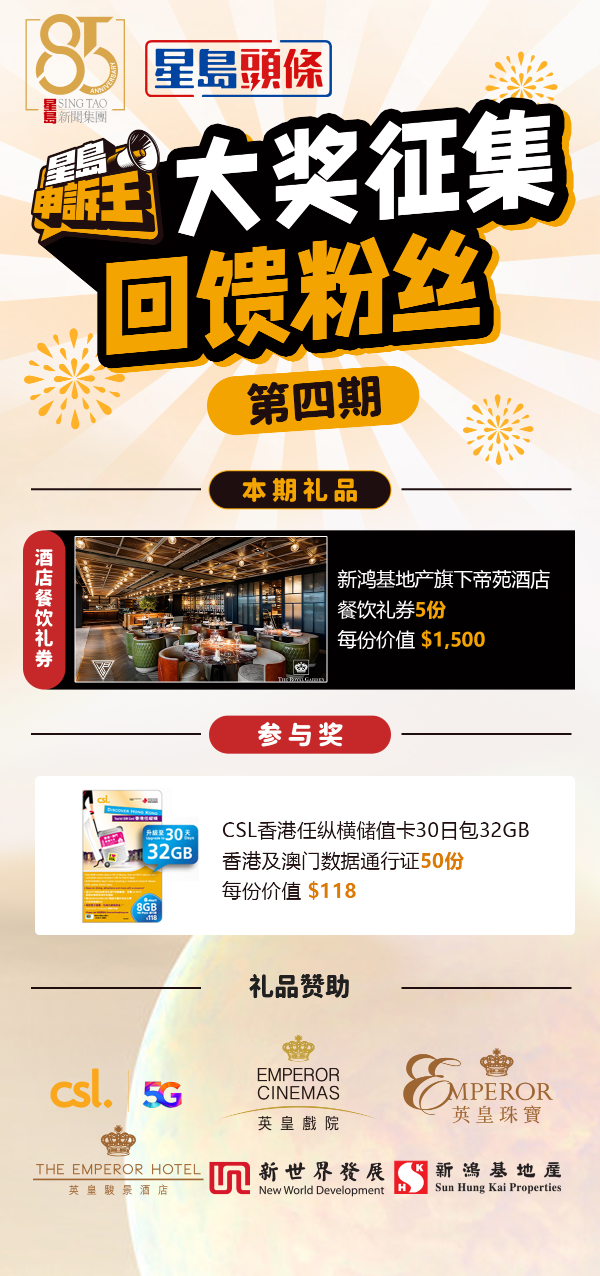 星島申訴王第三輪抽獎福利落下帷幕,我們會在7月8日公布獲獎名單。今天,第四輪抽獎福利開啟。