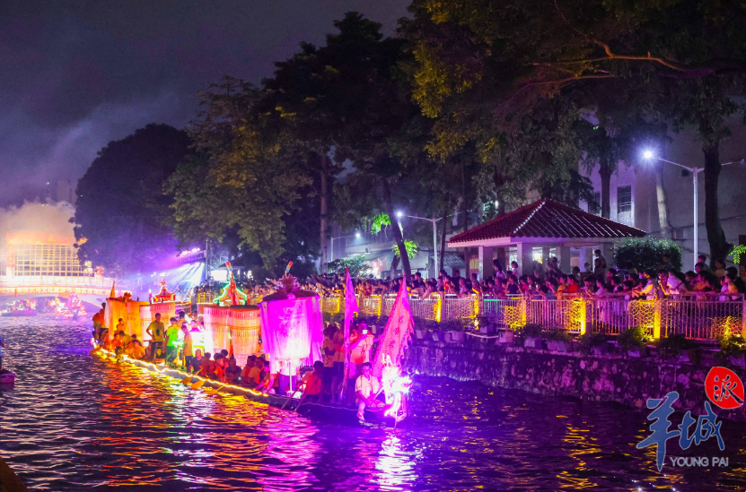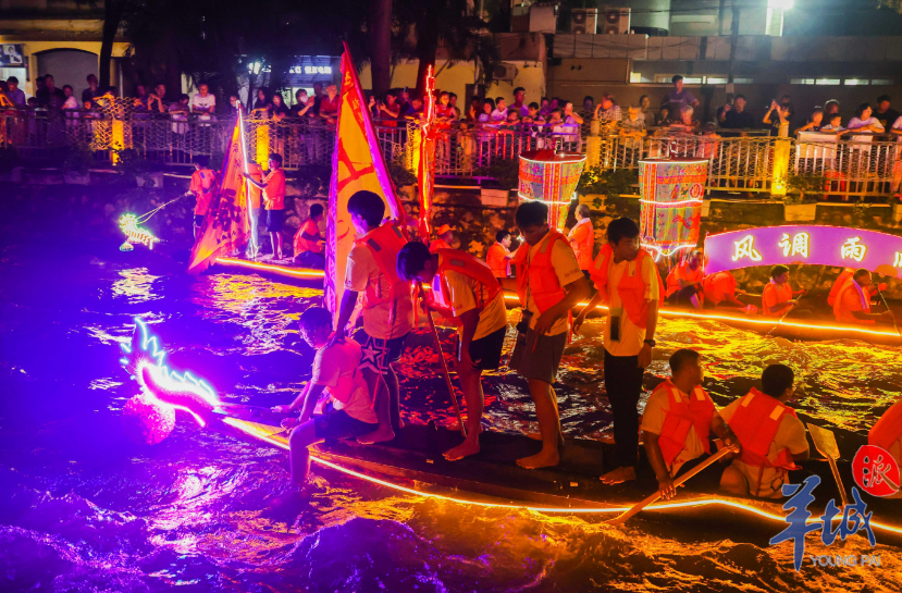 當晚,龍華大涌南區(qū)段鼓樂喧天、浪花飛濺、煙火漫天綻放,來自各坊社的10只彩龍以鑼鼓、羅傘、彩燈點綴龍身,“盛裝”出行,盡展龍舟美態(tài)。伴著現(xiàn)代感的舞臺燈光和順德韻味的粵曲、古箏合奏,彩龍自由巡游,或兩兩并行,或前后跟隨,來回嬉游,魅力獨特。