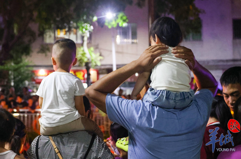▲家長的肩膀成為孩子的“觀景臺”