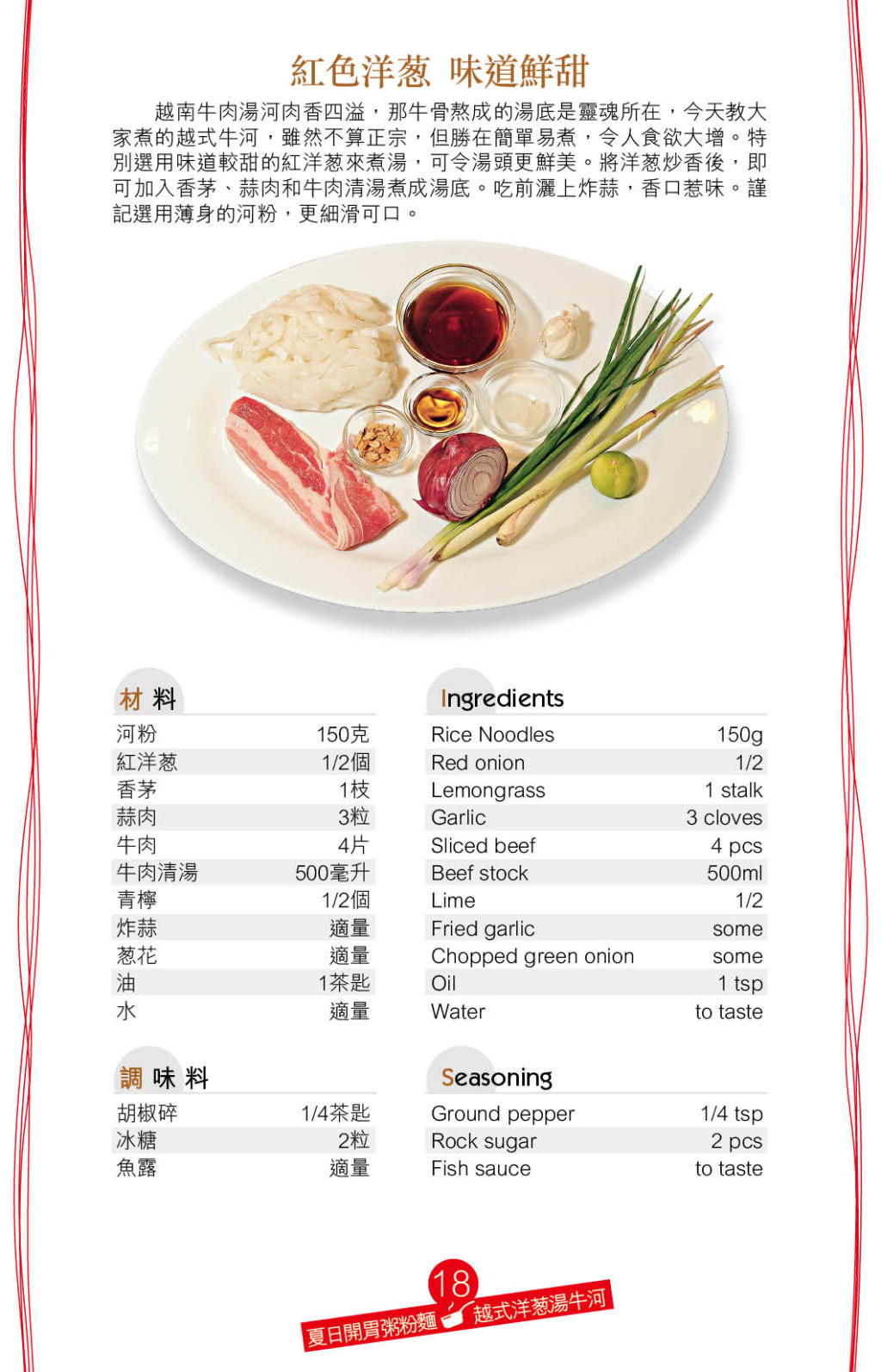 “越式洋蔥湯牛河”味道清新,選用多款地道越南材料烹調(diào),包括香茅、紅洋蔥、青檸、炸蒜、魚露,鮮味又清香。