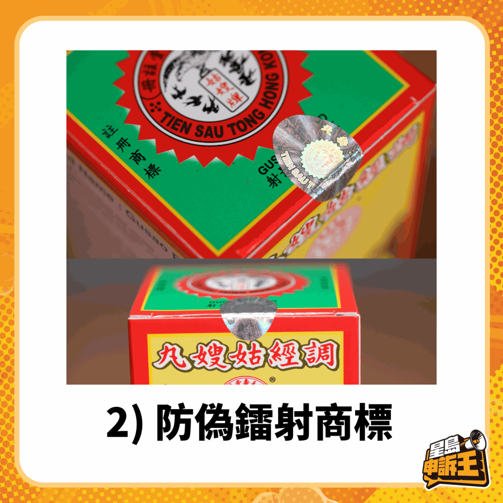 特征三:天壽堂注冊商標。包裝盒上印有兩個注冊商標,寫上“香港天壽堂注冊”及“姑嫂牌”字眼。