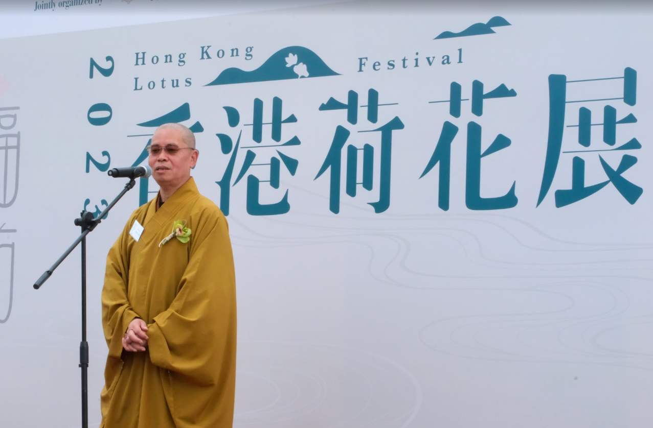 ▲凈因大和尚感激各界幫助,令2023香港荷花展得以順利舉行。