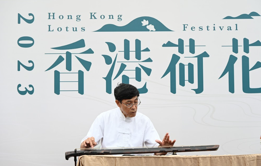▲古琴師李春源博士,以古琴演奏為2023香港荷花展揭開(kāi)序幕。