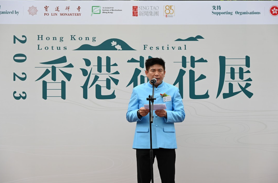 ▲泰國(guó)駐香港總領(lǐng)事Mr Chaturont CHAIYAKAM 說(shuō)很高興藉著今次荷花展,促進(jìn)香港和泰國(guó)兩地文化交流。