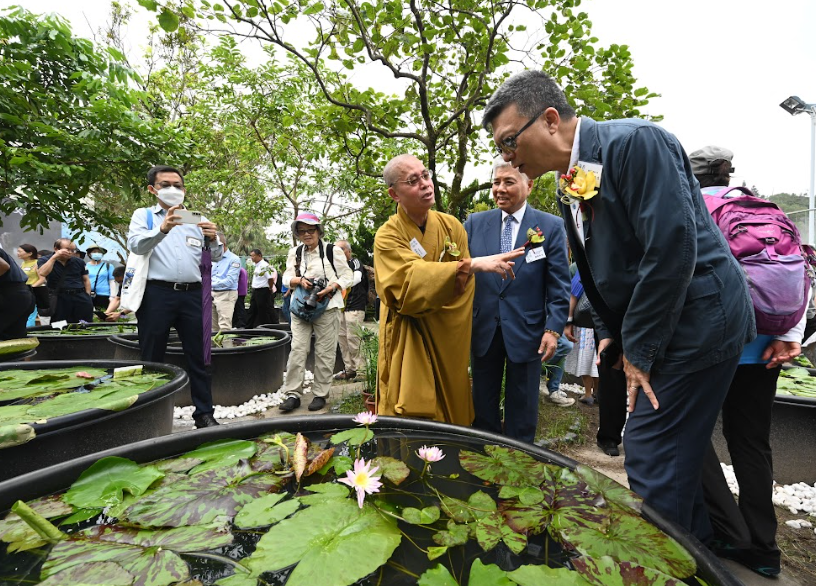 由寶蓮禪寺、香港園藝學(xué)會(huì)及星島新聞集團(tuán)聯(lián)合主辦的香港最大型荷花展 ——“盛世荷花?福祐香港”香港荷花展2023,將由今日(23日)開(kāi)始,一連十日在大嶼山寶蓮禪寺舉行。”香港荷花展2023”于今日舉行開(kāi)幕典禮。主辦方代表,寶蓮禪寺住持凈因大和尚,星島新聞集團(tuán)執(zhí)行董事兼行政總裁蔡晉博士,香港園藝學(xué)會(huì)名譽(yù)會(huì)長(zhǎng)蔡素玉女士,以及香港園藝學(xué)會(huì)會(huì)長(zhǎng)徐荷芬女士,聯(lián)同一眾嘉賓支持出席,包括民政及青年事務(wù)局局長(zhǎng)麥美娟女士,香港旅游發(fā)展局主席彭耀佳傅士,泰國(guó)駐香港總領(lǐng)事Mr. Chaturont CHAIYAKAM,中央駐港聯(lián)絡(luò)辦公室新界工作部李功勛副部長(zhǎng),前全國(guó)人大常委會(huì)香港基本法委員會(huì)副主任梁愛(ài)詩(shī)博士,前全國(guó)人大常委范徐麗泰博士,旭日集團(tuán)副董事長(zhǎng)兼總經(jīng)理?xiàng)顒煜壬?,香港江蘇社團(tuán)總會(huì)會(huì)長(zhǎng)姚茂龍先生,香港大學(xué)饒宗頤學(xué)術(shù)館館長(zhǎng)李焯芬教授,香港珠海學(xué)院陳致校長(zhǎng)以及離島區(qū)議會(huì)主席余漢坤先生。