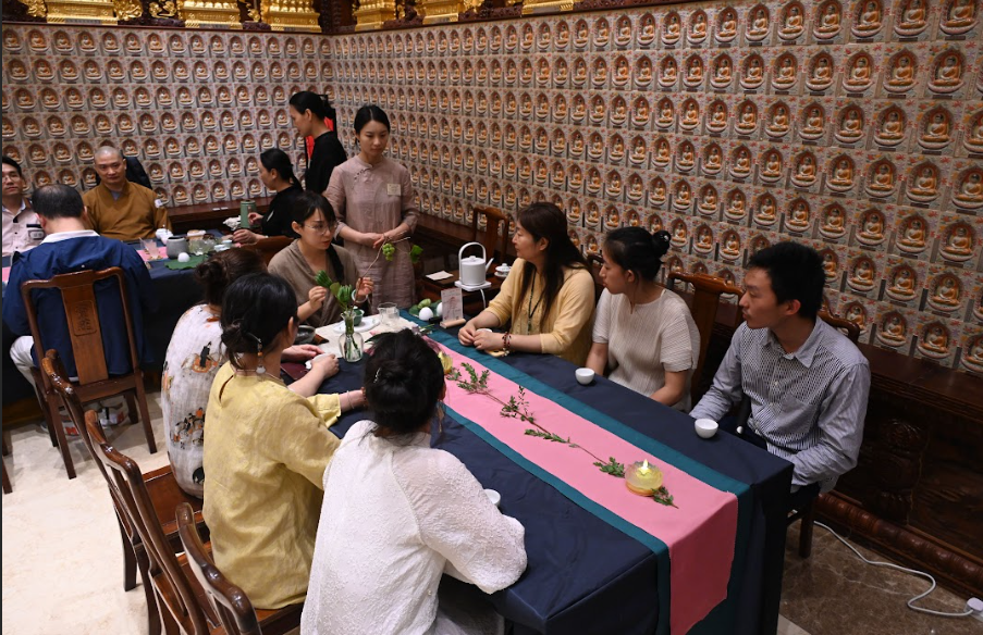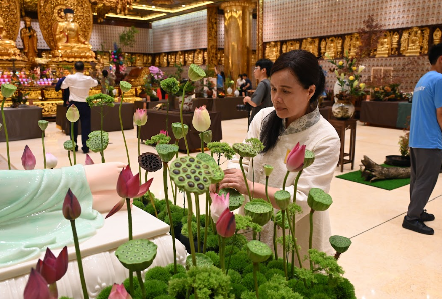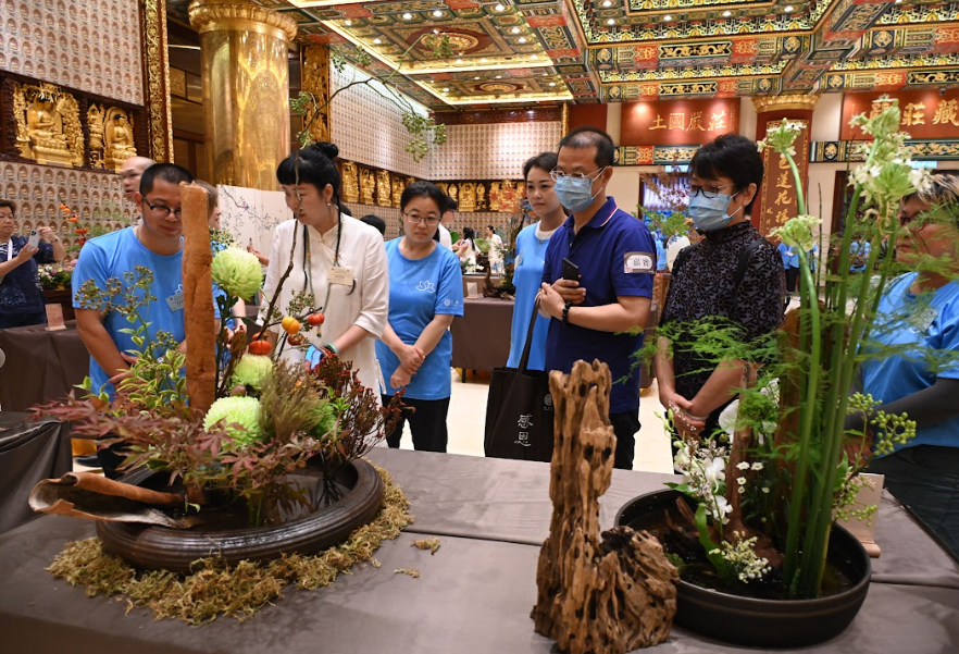 ▲活動(dòng)開(kāi)始前,花藝師首先進(jìn)場(chǎng),進(jìn)行鮮花供佛儀式。