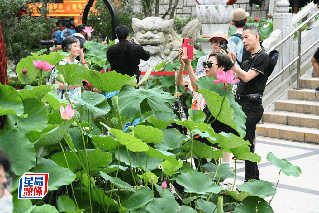▲不少市民一早來(lái)到寶蓮禪寺觀賞荷花盛放。