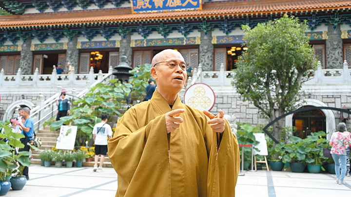▲凈因大和尚感激各界幫助,令荷花展得以順利舉行。
