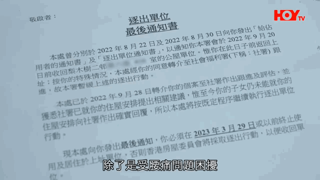 根據(jù)陳婆婆收到的遷出通知書時間為去年8月左右,很可能就是在此期間被房屋署發(fā)現(xiàn)長期不在香港居住。