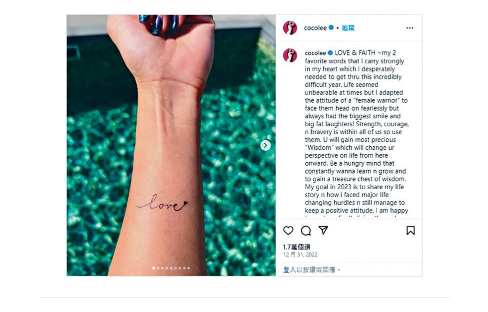 兩人又指,今年是CoCo出道30周年,29年來她除了用勁歌熱舞帶給歌迷無盡快樂與驚喜外,更努力地為華人歌手在國(guó)際歌壇開拓一片新天地,一直全力以赴為華人發(fā)光發(fā)亮,為她感到自豪。兩人非常感恩和榮幸有一位這么優(yōu)秀、杰出的妹妹,感恩上天賜給她們一位這么善良的天使,希望現(xiàn)在她去了更快樂的地方,不再受抑郁癥煎熬。