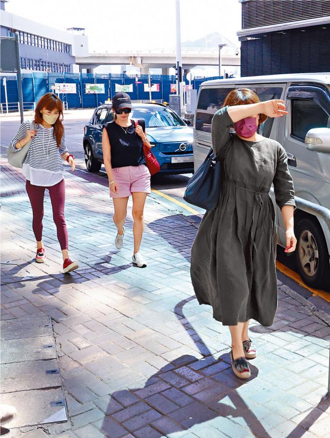 ▲大姐李秋林以手遮面,李思林(左)則跟友人緊隨其后。