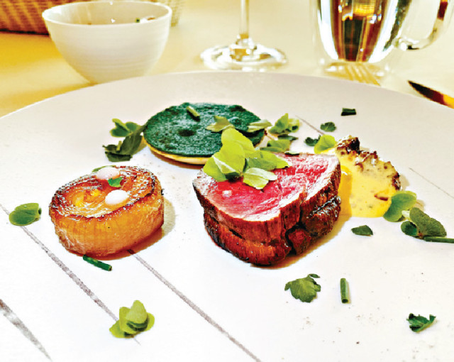 至于主菜Boeuf fou d'herbs沿用肉味香濃的法國(guó)Charolais草飼牛肉眼扒入饌,肉質(zhì)鮮美而鮮嫩可口,用時(shí)醮上滑順豐厚而附香草芳香的Bearnaise醬汁提味;隨附的法國(guó)Roscoff紛紅洋蔥微甜雅緻,迷你香草脆皮撻則散發(fā)Mushroom Duxelles香菇泥層的風(fēng)味。