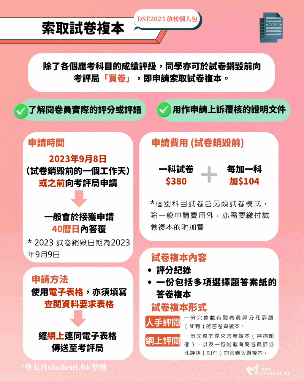 索取DSE試卷複本可了解閱卷員實(shí)際的評(píng)分或評(píng)語(yǔ),亦可用作申請(qǐng)上訴覆核的證明文件。
