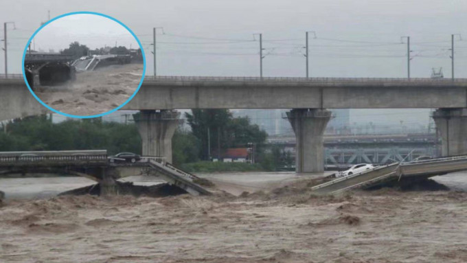 小清河橋部份橋面被沖毀,多輛私家車落水