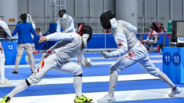 今午(7日)展開(kāi)的男花團(tuán)體賽,已手執(zhí)個(gè)人賽金牌的張家朗及銅牌的蔡俊彥,以無(wú)敵姿態(tài)進(jìn)行今午5時(shí)的決賽。4強(qiáng)對(duì)東道主國(guó)家隊(duì),港隊(duì)一直處于領(lǐng)先位置,最終殺入決賽。