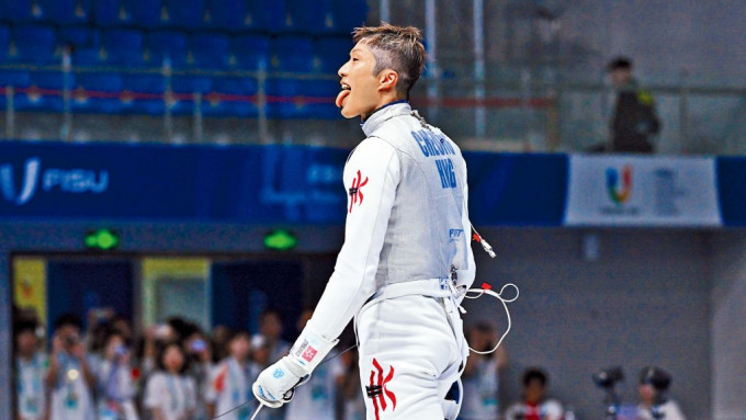 ▲“香港劍神”張家朗再次揚(yáng)威賽場(chǎng),成功在成都世大運(yùn)花劍奪金。 大專體育協(xié)會(huì)圖片