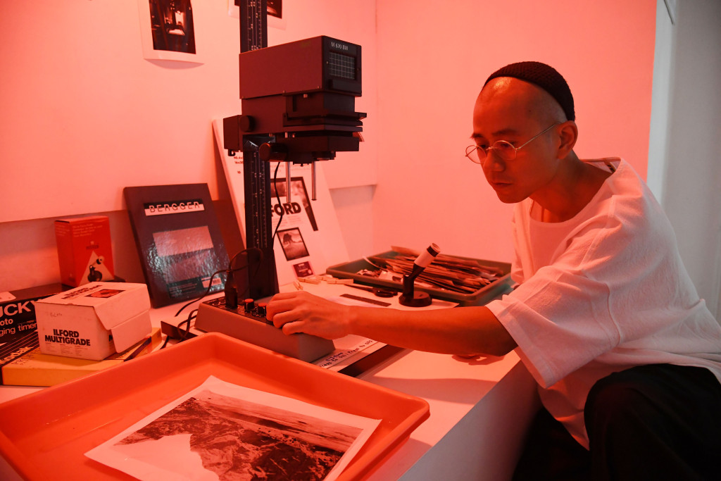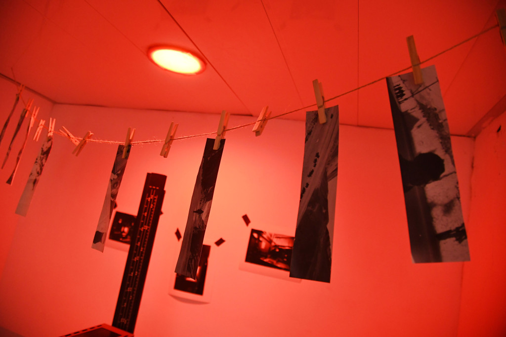 ▲展覽場(chǎng)地特辟一角裝置成曬相的黑房空間,當(dāng)中正展示了阿揚(yáng)的攝影作品。