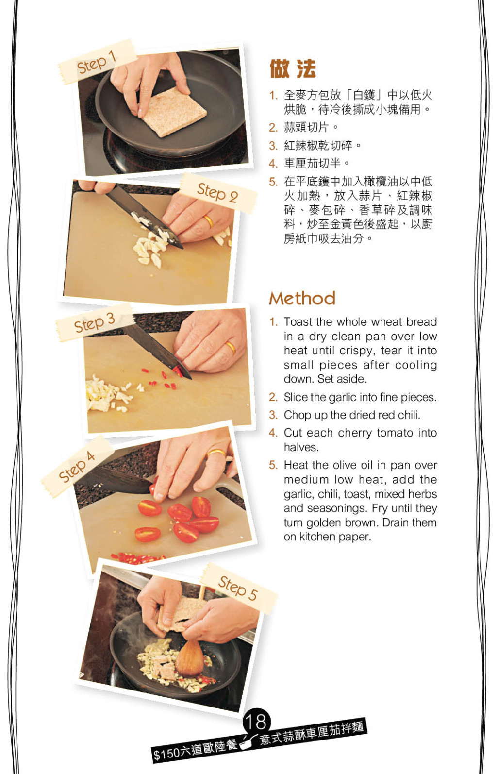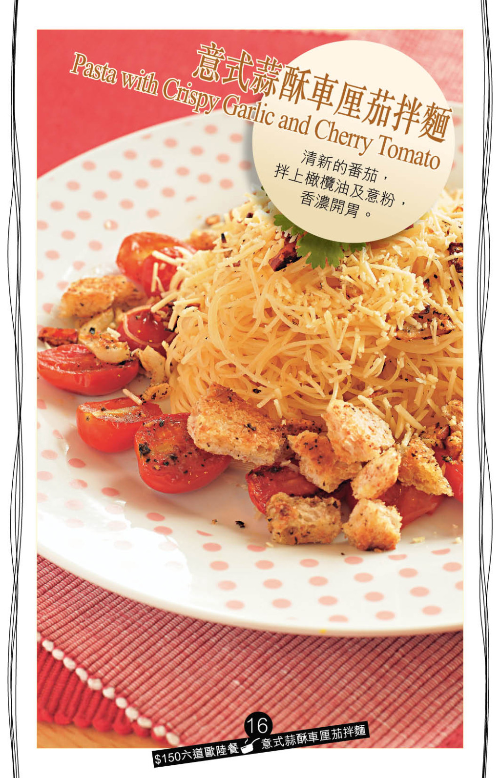 西餐意粉的配搭和烹法千變?nèi)f化,今日炮制的“意式蒜酥車?yán)迩寻杳妗?,重點(diǎn)是用作提味的自制蒜酥,以橄欖油炒香蒜片、紅辣椒碎、烘脆麥包碎、香草碎及調(diào)味料,再用廚紙吸去多余油份即可。 意粉拌入巴士臣芝士、車?yán)迩?、紅辣椒干及蒜酥,惹味可口。