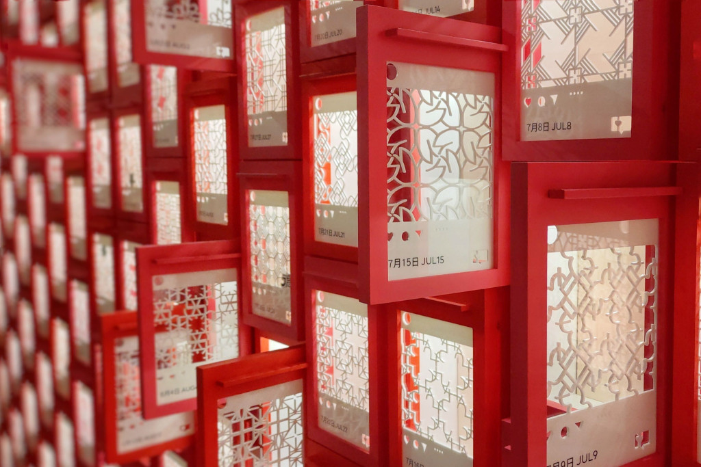 第四項(xiàng)介紹的文青必看藝文活動(dòng),是日藉香港藝術(shù)家伊藤?gòu)┳右陨諡橹黝}而創(chuàng)作的藝術(shù)裝置。 藝術(shù)家以社交平臺(tái)貼文為樣式,設(shè)計(jì)了366個(gè)會(huì)發(fā)光的“生日信箱”(Likeboxes,意即在貼文按贊,與Lightboxes為諧音),參觀(guān)者可以在自己生日日期的信箱中取得一張來(lái)自陌生人的“賀壽箋”(手畫(huà)生日卡),然后接力為另一位有緣人親手繪畫(huà)一張“賀壽箋”,在獲得祝福的同時(shí)向別人送上充滿(mǎn)溫度的祝福,藉此反思現(xiàn)代人將訊息復(fù)制貼上、 一鍵廣傳的習(xí)慣。
