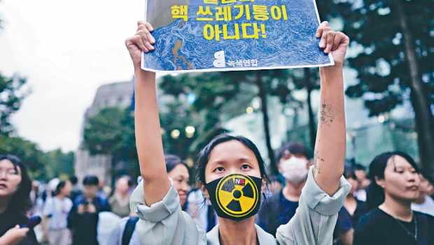 韓國首爾有環(huán)保組織要求日本政府收回核廢水排海決定。