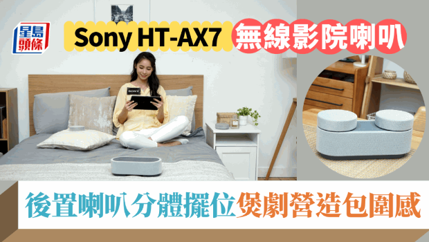 Sony近年積極開(kāi)發(fā)玩法創(chuàng)新的影院系統(tǒng),如4喇叭列陣的HT-A9,即將于10月登場(chǎng)的HT-AX7,則可視為針對(duì)個(gè)人的私家無(wú)線影院喇叭,獨(dú)特分體式設(shè)計(jì)可1分為3,前置主機(jī)坐前,一對(duì)后置左、右放到后方,配合360 Spatial Sound Mapping技術(shù),睇戲煲劇可營(yíng)造虛擬環(huán)繞聲,由于喇叭做得輕巧加上無(wú)線,客廳、露臺(tái)、睡房隨你擺放,就是床上煲劇也可以輕松感受氛圍感。