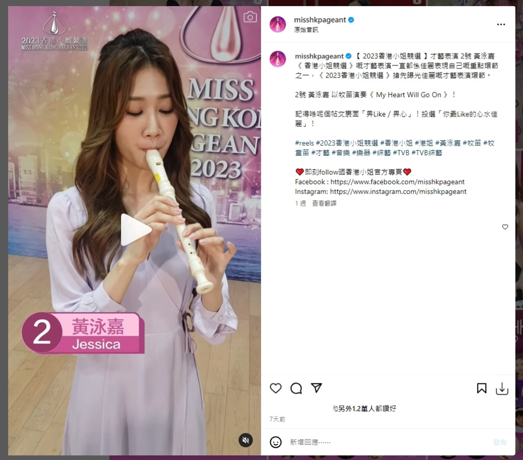 另一靠才藝表演食糊佳麗還有梁晶晶,展現(xiàn)別具特色“雙手畫畫”超必的晶晶,除成為才藝表演中獲得最多Like數(shù)佳麗第三名(3,015 Likes),相關(guān)片段view數(shù)亦達(dá)20.8萬,成最高view數(shù)第三名,亦因而成功擠身五甲后來居上;同樣值得關(guān)注的還有陳霈錤,除之前獲視帝譚俊彥點(diǎn)名大贊有氣質(zhì),其于才藝表演吸獲的Like數(shù)亦暫為第五名,隨時(shí)有機(jī)會彈出。而一直被視為大熱門的郭佩文,則因在才藝表演中未能爭取可觀Like數(shù),由大熱跌出五強(qiáng);證明一日未到?jīng)Q賽,港姐三甲人選仍是充滿變數(shù)。