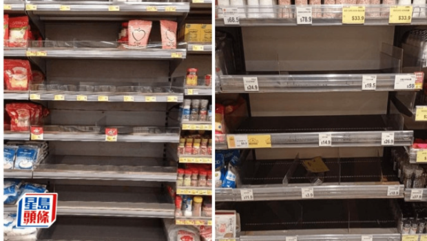 ▲不同超巿食鹽貨架被搶購一空。香港突發(fā)事故報料區(qū)及討論區(qū)FB圖片