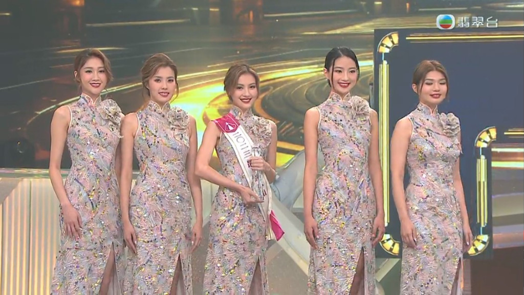 旗袍設(shè)計(jì)以閃片裝飾,每位佳麗左肩上有一朵花,高衩大曬長(zhǎng)腿。貼身設(shè)計(jì)令身材最好的9號(hào)潘明璇及16號(hào)郭珮文最為突出,展現(xiàn)曲線美。冠軍由大熱門、21歲的15號(hào)莊子璇奪得;亞軍是早前已奪得“最上鏡小姐”的4號(hào)21歲的王怡然;季軍是17號(hào)21歲的王敏慈,23歲姜依寧早前已于賽前當(dāng)選“友誼小姐”,而郭珮文及陳霈錤則五強(qiáng)止步。