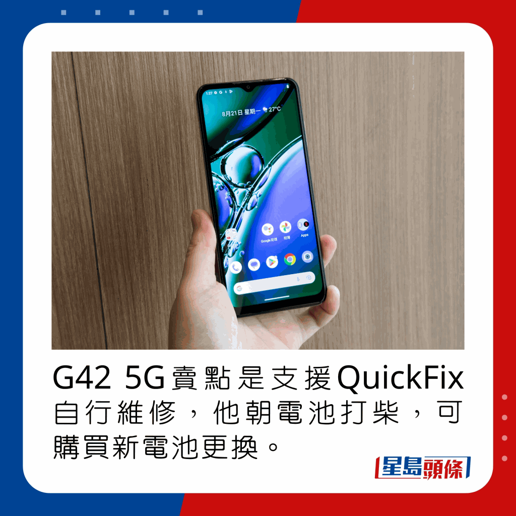 G42 5G賣點是支援QuickFix自行維修,他朝電池打柴,可購買新電池更換。