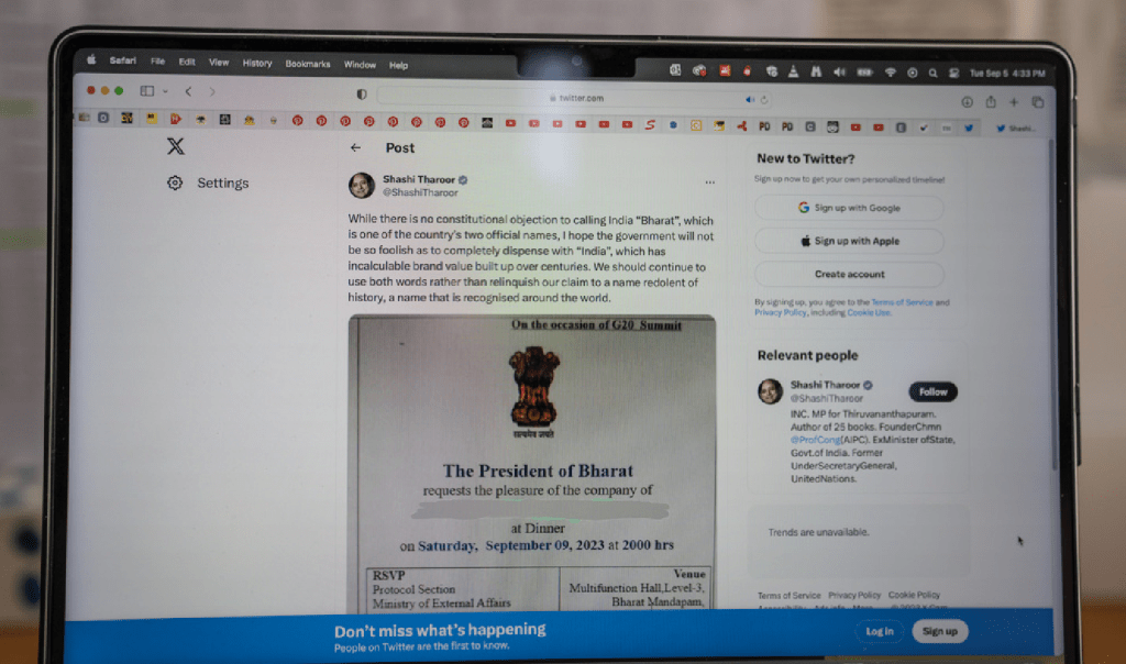 隸屬BJP的阿薩姆省省長(zhǎng)沙爾馬(Himanta Biswa Sarma)支持更改國(guó)名,他周二在X發(fā)文時(shí)直稱印度為“巴拉特共和國(guó)”。