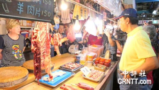 ▲郭臺(tái)銘臺(tái)北東門市場(chǎng)了解攤商遇到的問題。中評(píng)社