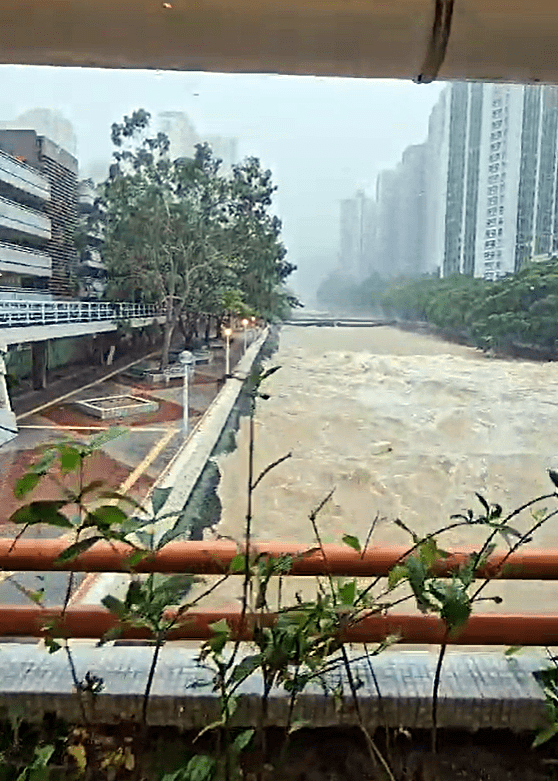 ?世紀(jì)暴雨│城門河洶涌澎湃,美林商場(chǎng)天橋變“觀潮臺(tái)”
