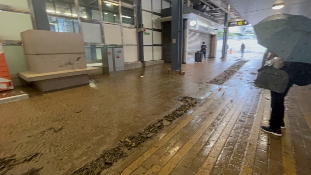 港鐵表示,由于受天氣情況影響及因應(yīng)觀塘線服務(wù)受阻,為維持車站運(yùn)作及列車服務(wù)順暢,東鐵線、觀塘線、荃灣線、港島線及屯馬線服務(wù)亦需要作出調(diào)整,班次會(huì)較疏。前往九龍?zhí)琳镜某丝?,可考慮使用東鐵線。今晨九龍?zhí)琳厩闆r,月臺(tái)往羅湖方向有乘客候車,但往紅磡方向的站口已拉閘關(guān)閉,其間運(yùn)作大致正常,惟站內(nèi)地面處處黃泥水,部份路面被沖毀,入閘機(jī)路面仍有積水,乘客行經(jīng)亦小心翼翼以免跣倒。港鐵職員則用隔水板及沙包阻擋積水涌入。