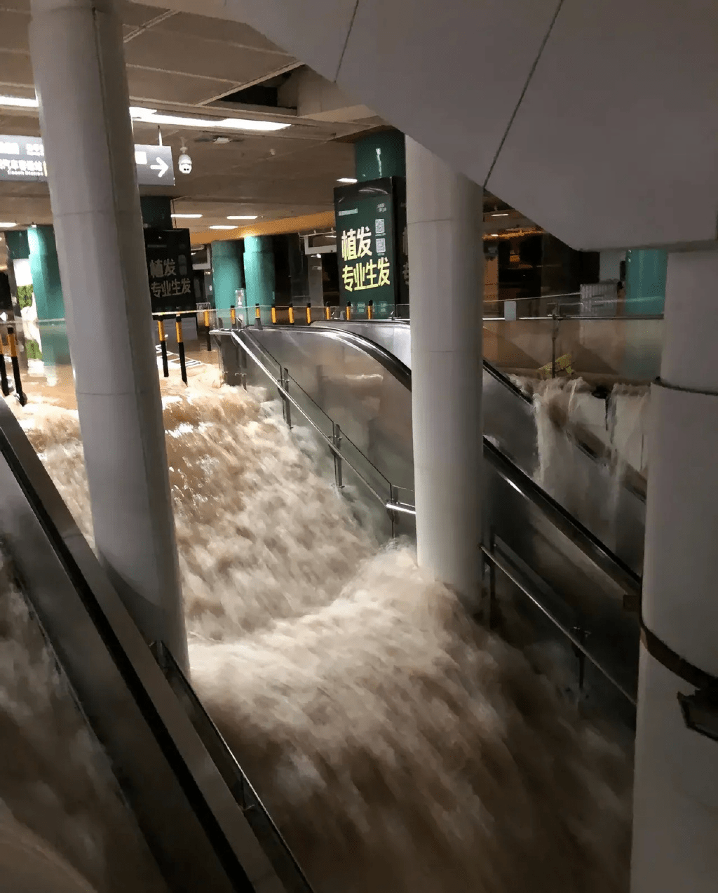 ▲羅湖關(guān)口岸對(duì)出,深圳火車站負(fù)一櫻,水浸情況嚴(yán)重,扶手電梯都被淹了。