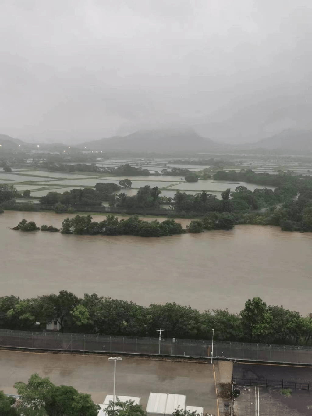 深圳河嚴(yán)重氾濫,水已漲滿。