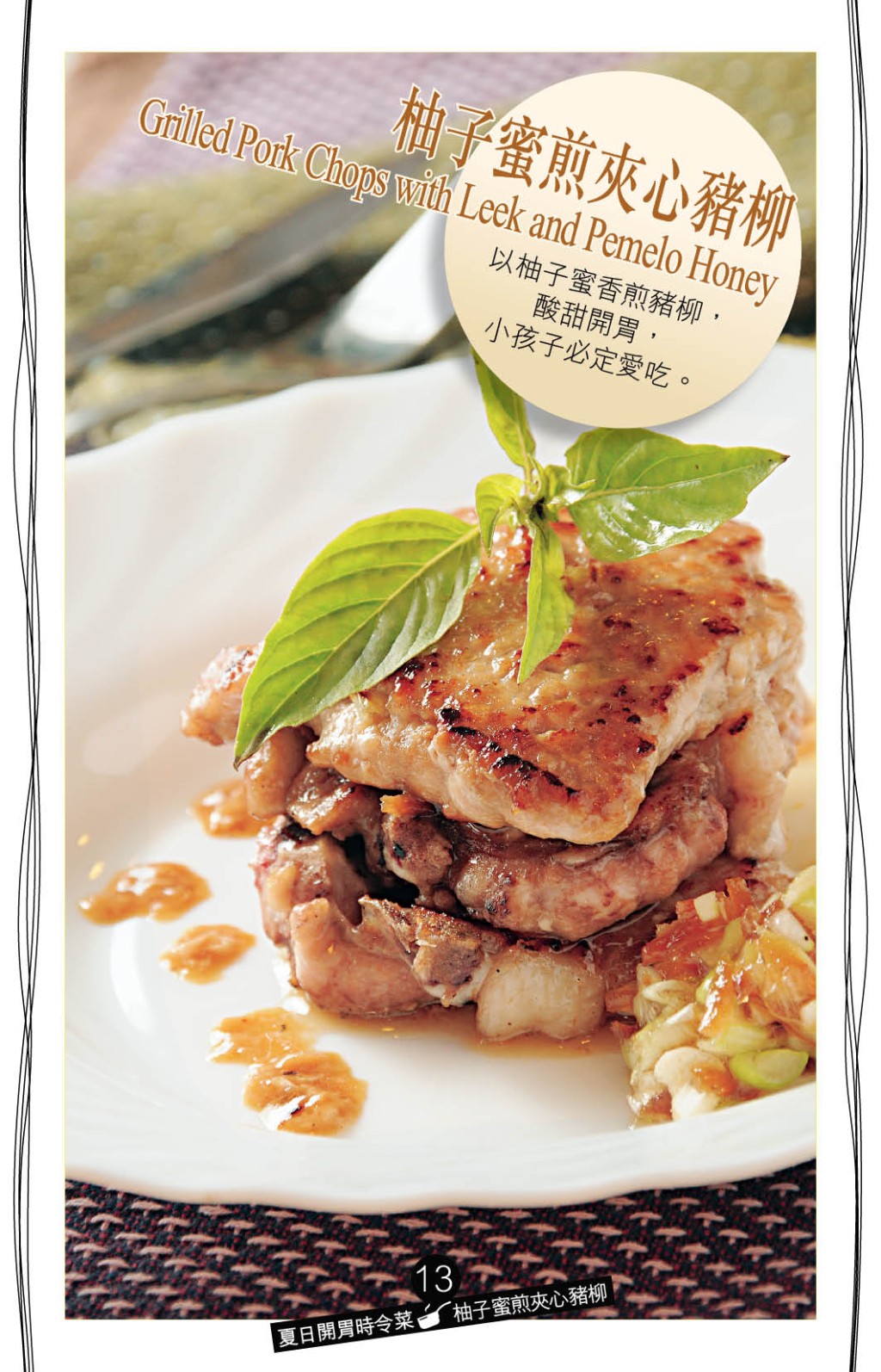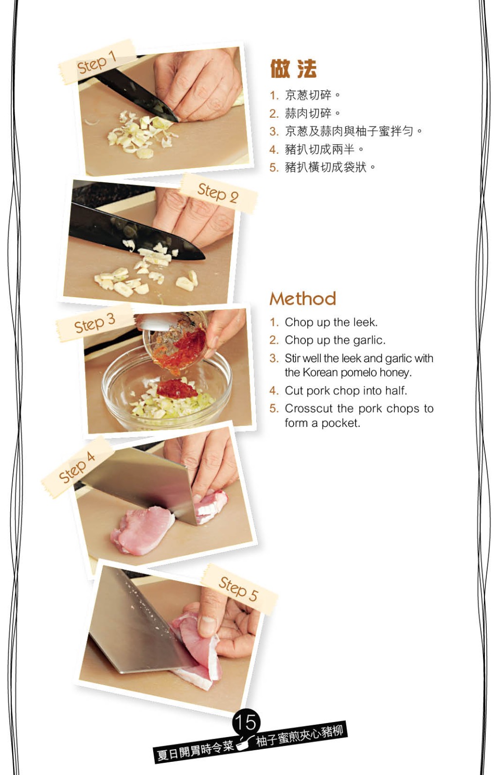 加入韓式調(diào)味的“柚子蜜煎夾心豬柳”,口感軟滑香甜。特別選用肉嫩的豬柳入饌,先將豬柳打橫切開(kāi)造成袋狀,用松肉槌將豬扒捶松,加調(diào)味料醃15分鐘,再釀入以京蔥碎、蒜肉及柚子蜜拌勻的醬料,起油鑊將豬柳煎熟至金黃色即可上碟。