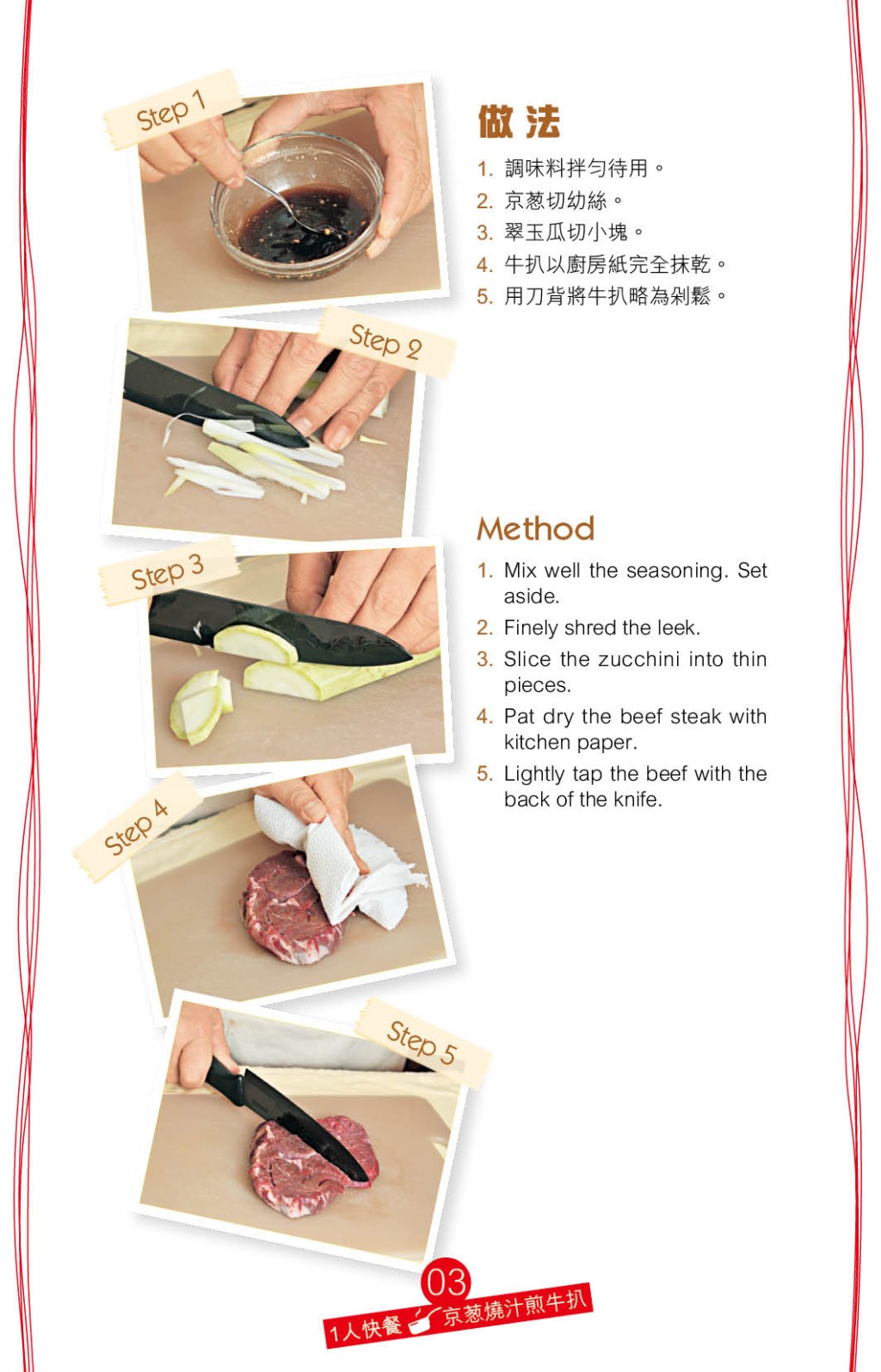 ▲采用中式調(diào)味的“京蔥燒汁煎牛扒”,調(diào)味汁料以常用的生抽、老抽、紹興酒、糖、胡椒粉、麻油、清雞湯調(diào)成。