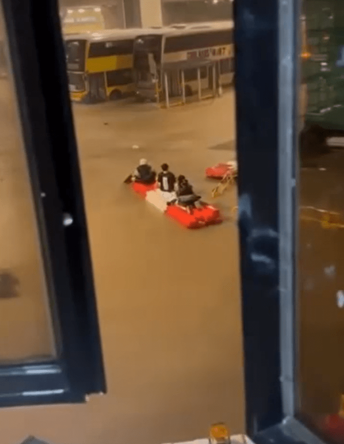 處處傾盆雨,區(qū)區(qū)變澤國(guó),暴雨下的香港,陸上行舟再不是夢(mèng)囈! 今(8日)日網(wǎng)上流出一條短片,片中三名少年疑被洪水所困,利用路邊水馬自制“救生艇”自救,滑板變劃漿,動(dòng)動(dòng)腦筋大災(zāi)大難一樣跨過(guò)。
