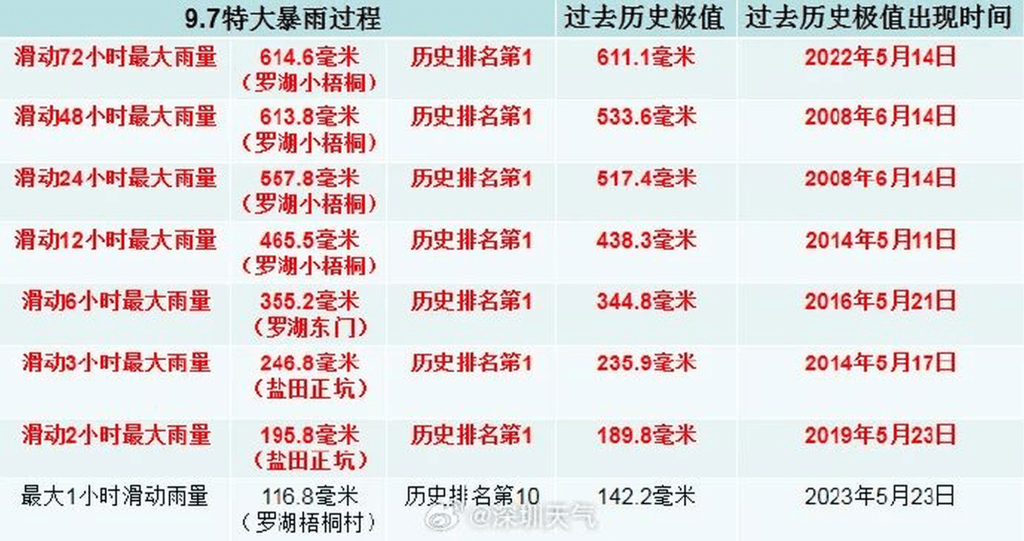 深圳暴雨打破1952年以來(lái)7項(xiàng)歷史紀(jì)錄。