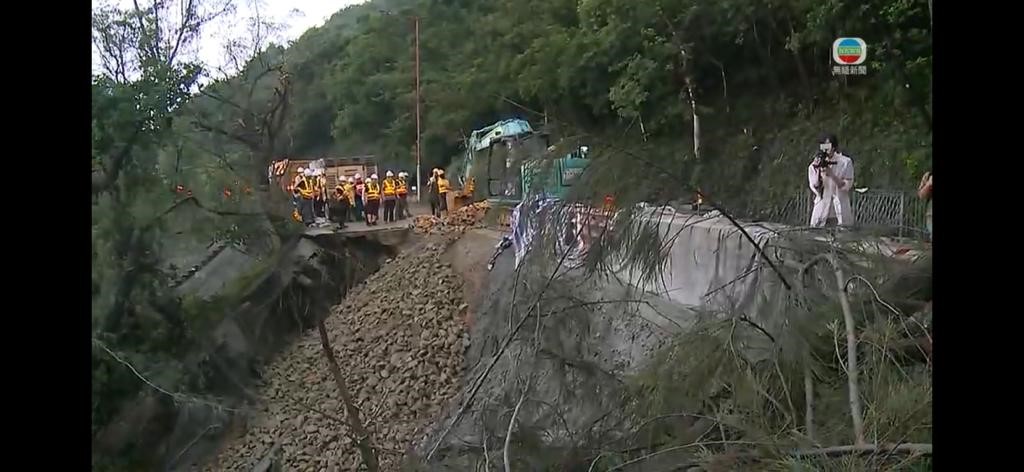 港島南區(qū)石澳道在世紀(jì)暴雨下出現(xiàn)路陷及山泥傾瀉及路陷,受影響路段因需要進(jìn)行緊急斜坡工程而暫時(shí)封閉,區(qū)內(nèi)電力及通訊中斷。特首李家超昨日晚上近6時(shí)到石澳路陷現(xiàn)場視察,指示各部門爭分奪秒搶修路面。石澳道晚上約9時(shí)半重開一條行車線讓輕型車輛通過,今早6時(shí)單層巴士可行駛。