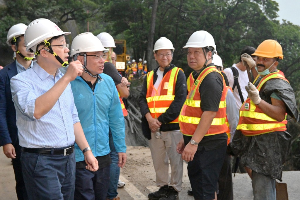 李家超到石澳道路陷現(xiàn)場視察