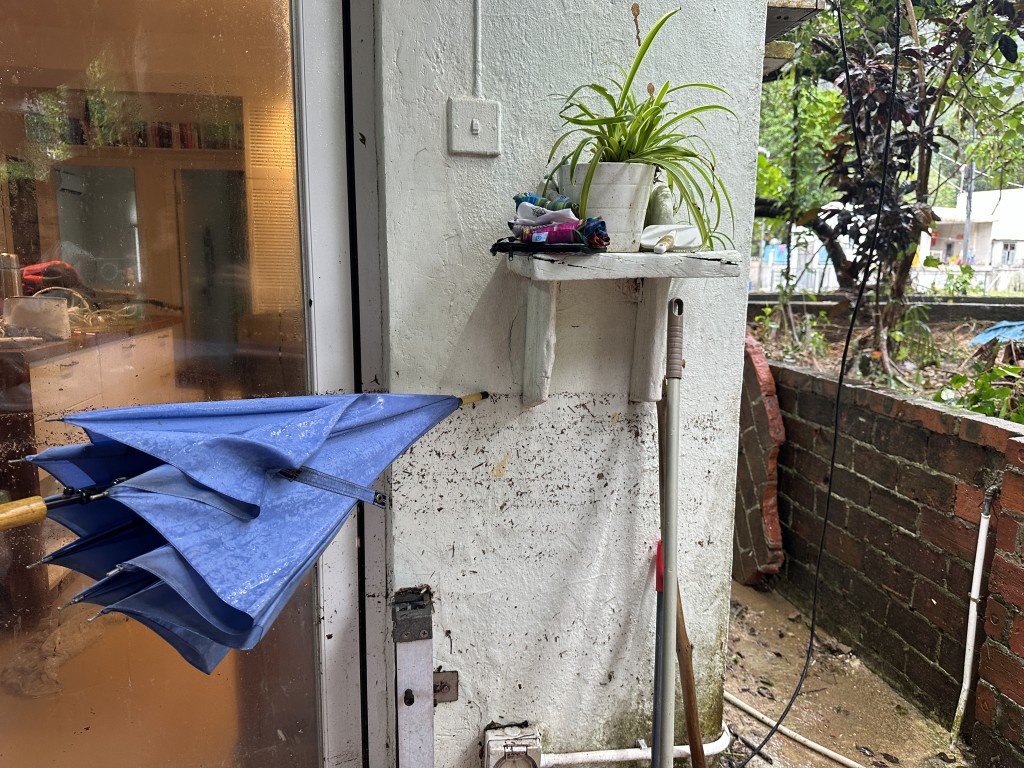 記者今日到訪大浪灣村,見(jiàn)到有村民外出購(gòu)置糧食或收拾家園,居于河道旁的村民吳太表示,自己的住所每逢大雨都一定水浸,故一早已預(yù)備防水板,但周四當(dāng)晚雨勢(shì)非常強(qiáng)勁,暴雨發(fā)生僅半小時(shí),水位已升至門口壆位,隨即在門口位置加裝半米高的防水板,可惜仍不敵來(lái)勢(shì)洶洶的雨水,“啲水系咁涌入嚟,最高去到雪柜底,真系嚟得好急,好突然,室外啲水仲嚟到窗邊附近,唯有不停舀水倒出出面,要啲水斗快,唔想啲水浸到我啲嘢呀(水從那涌進(jìn)來(lái),最高達(dá)到冰箱底下,真來(lái)得很急,很突然,室外把水還來(lái)到窗邊附近,只好不停舀水倒出外面,要把水斗快,不想讓水浸到我的東西呀)”。