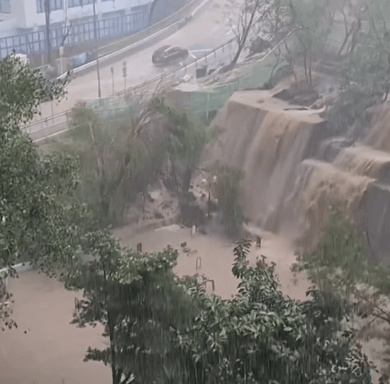 ?世紀(jì)暴雨|將軍澳翠林邨后山坡被暴雨沖擊,儼如瀑布成奇景