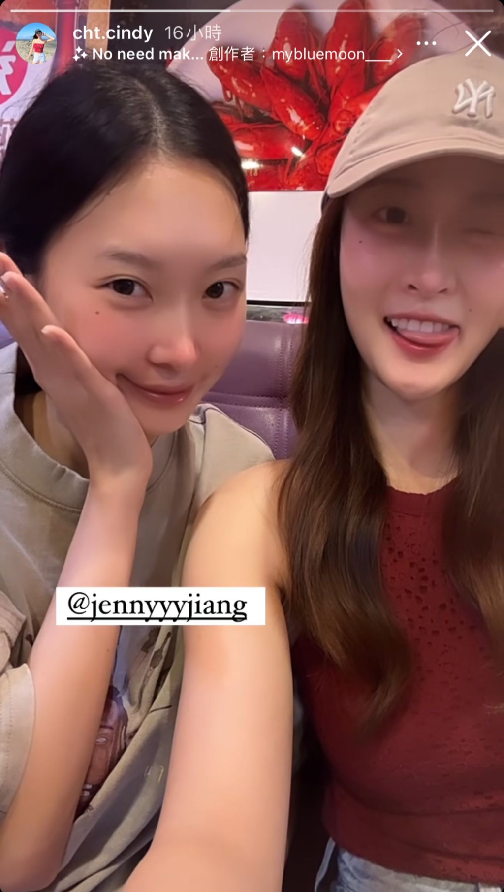 ▲陳曉彤懶理是非,昨日(11日)于IG Story貼出與“友誼小姐”姜依寧(左)的合照。