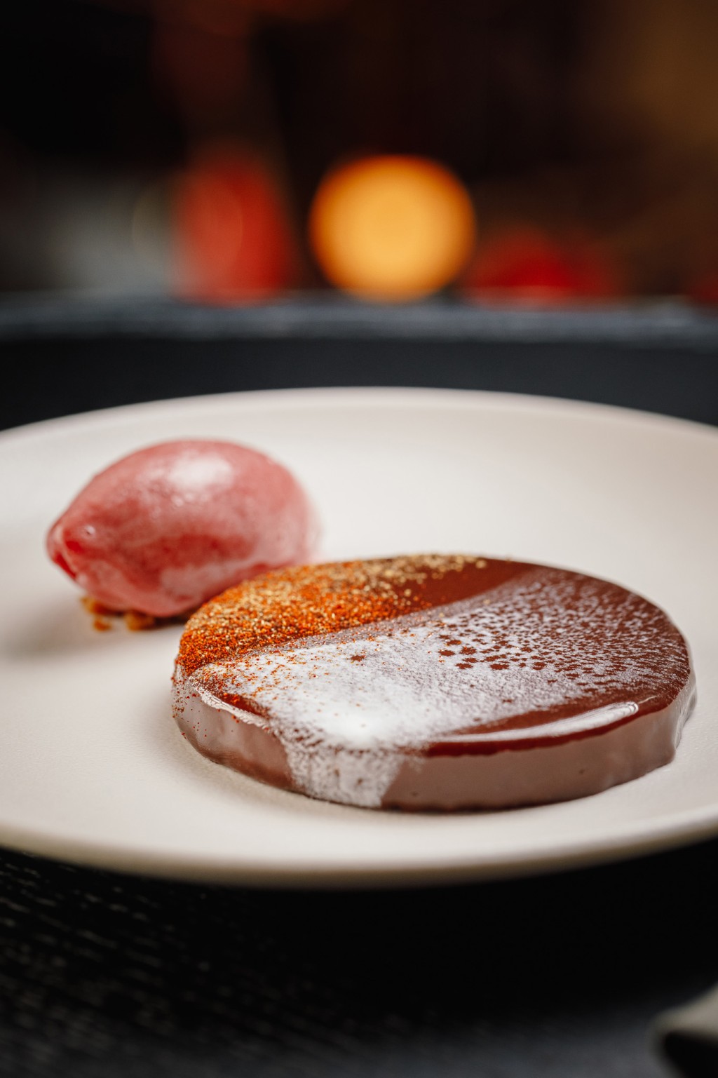 麻辣朱古力慕絲——中秋甜品,形狀如明月,光滑表面刻上月亮紋理,口感輕軟,味道香甜帶麻辣馀韻。