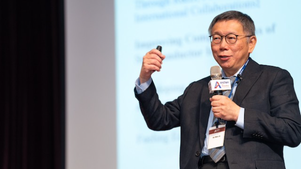 柯文哲12日出席臺(tái)灣美國(guó)商會(huì)午宴演講。