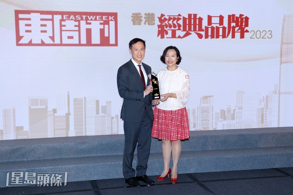 ▲港鐵公司獲頒“經(jīng)典品牌”大獎(jiǎng),并由企業(yè)事務(wù)及品牌總監(jiān)蔡少綿(左)代表領(lǐng)獎(jiǎng)。