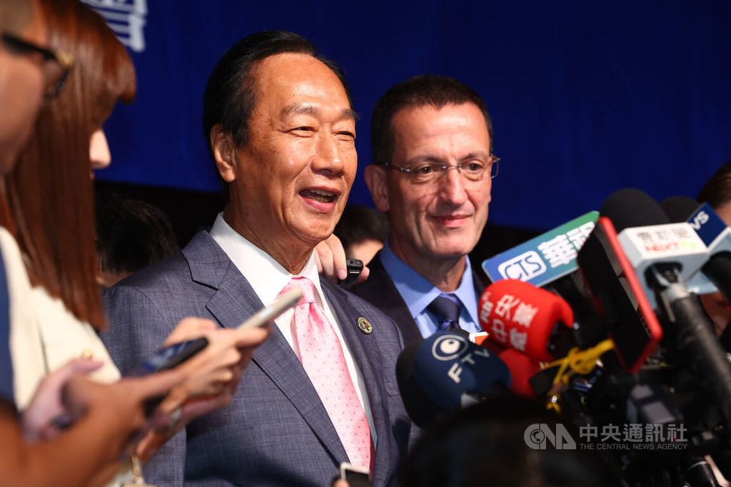 ▲鴻海集團(tuán)創(chuàng)辦人郭臺(tái)銘(右2)13日出席活動(dòng)受訪時(shí)未透露副手人選,僅表示不差這10幾個(gè)小時(shí),“明天早上8點(diǎn)半,你們就會(huì)知道”,但14日不會(huì)前往“中選會(huì)”登記,“是先宣布副手人選”。中央社