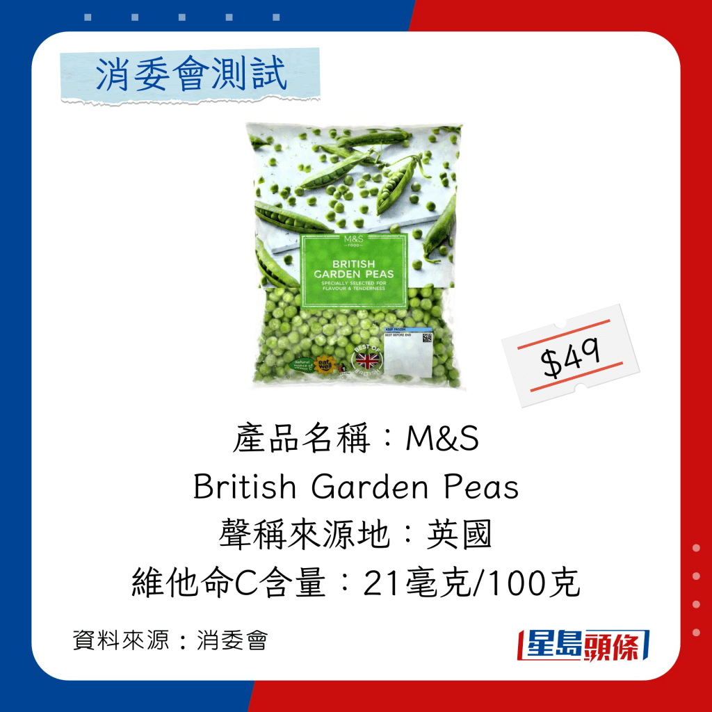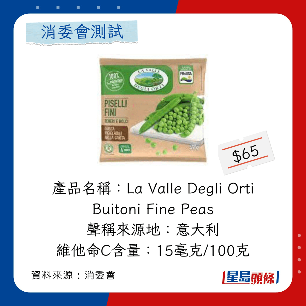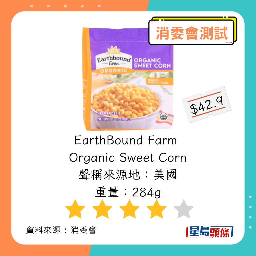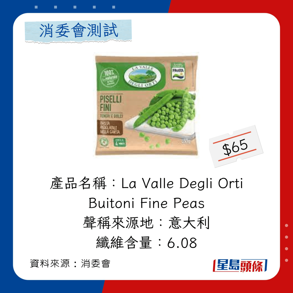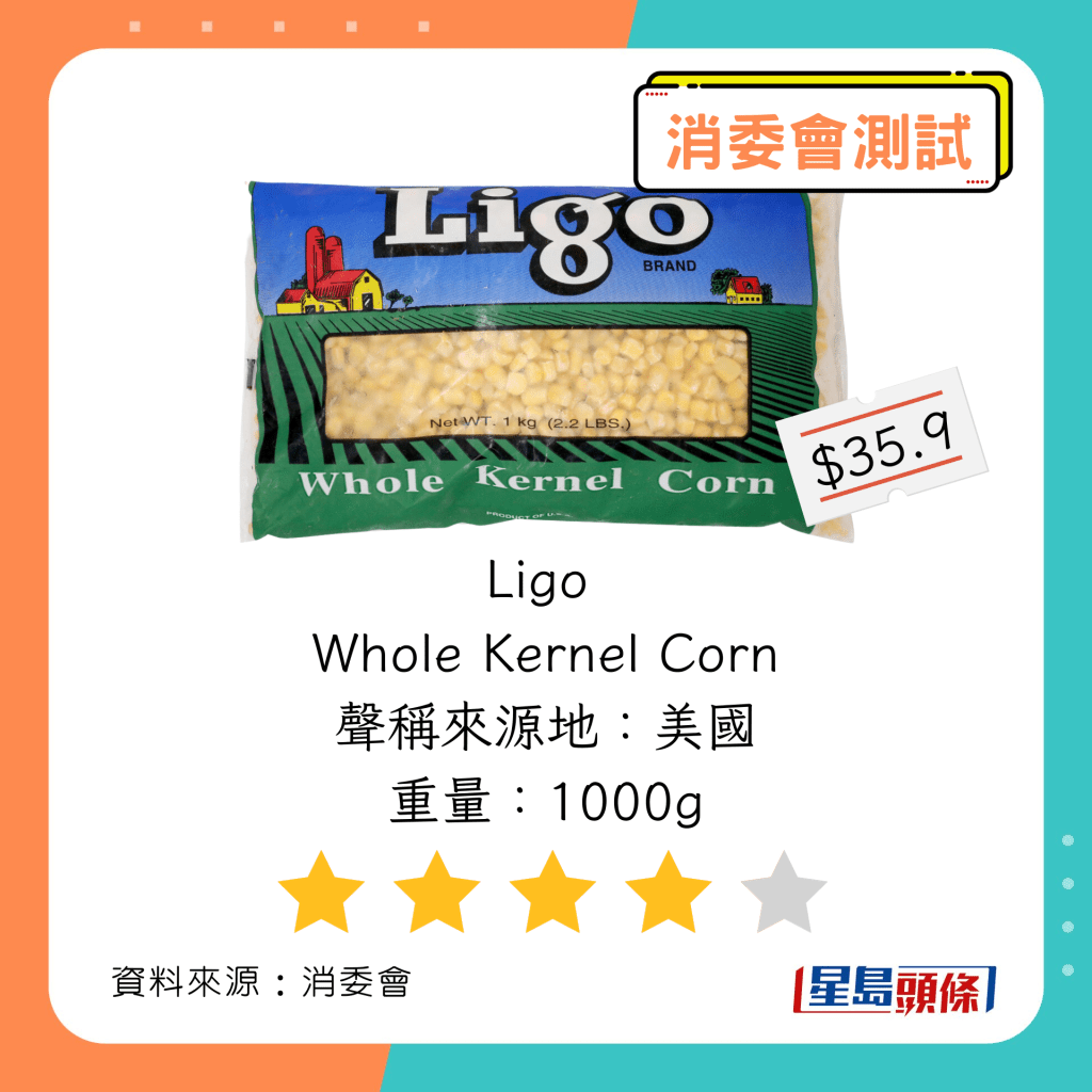 玉米粒及豌豆粒測試中,總評獲五星滿分名單如下,上榜的全是冷凍豌豆粒: