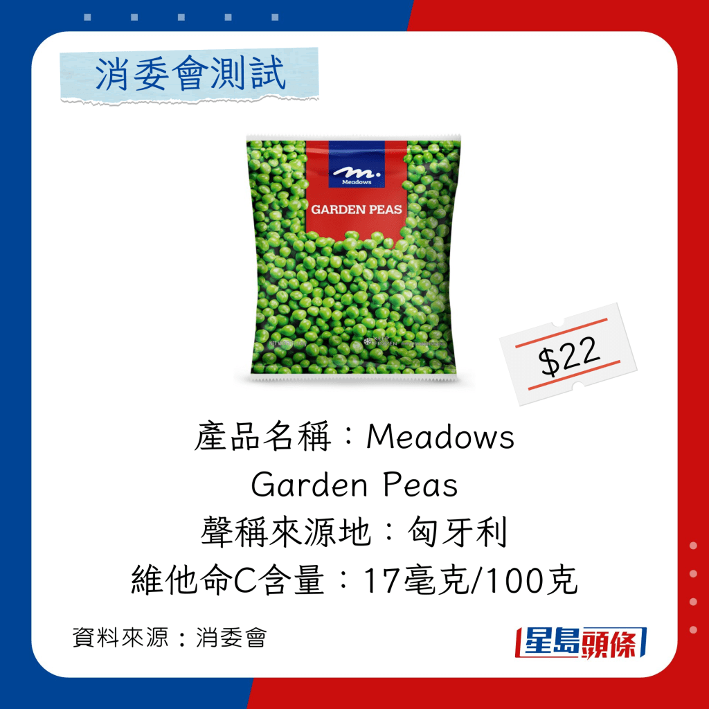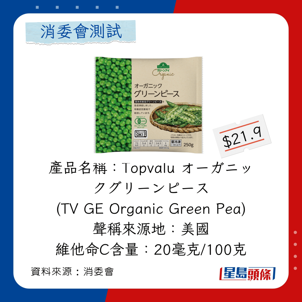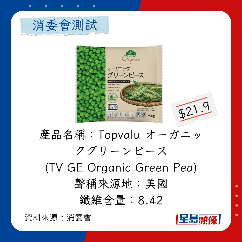 ▲消委會(huì)測試24款冷凍豌豆粒玉米粒營養(yǎng)及污染物。